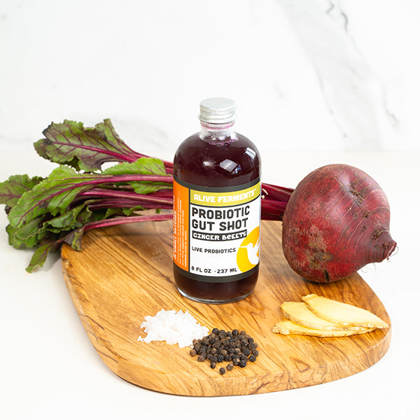 The fermentation process adds a slightly sour and pickled flavor to this ginger beet gut tonic, which enhances the overall taste profile. The ginger flavor is noticeable and provides a slightly spicy and zesty taste, while the beets offer an earthy sweetness.
